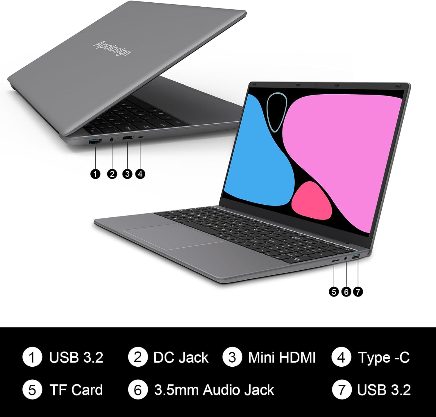 ApoloSign 15.6″ Full HD Laptop, 12GB RAM, 512GB SSD, Expandable to 1TB, Intel N5095 Processor, Dual-Band WiFi, 178° Viewing Angle, Dual Speakers-Gray