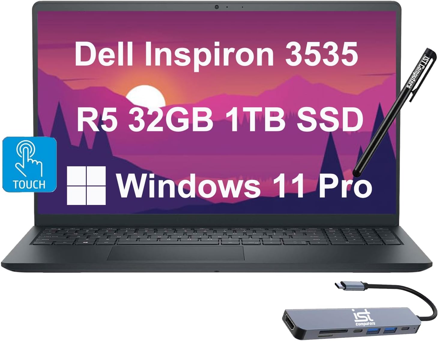 Dell Inspiron 15 15.6″ Business Laptop (FHD Touchscreen, AMD Ryzen 5 7530U, 32GB RAM, 1TB SSD, (6-Core Beat i7-1165G7)) Numeric Keypad, Webcam, IST HUB & Pen, Inspiron 3000 3535, Win 11 Pro, Black