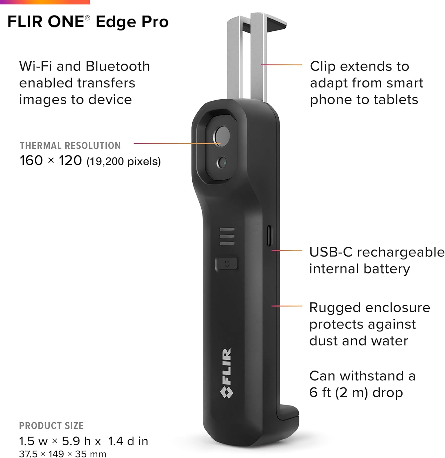 FLIR ONE EDGE PRO – Bluetooth Thermal Imaging Camera for Smartphones. High Resolution (160×120) Connects Wirelessly and Compatible with all iOS and Android devices .