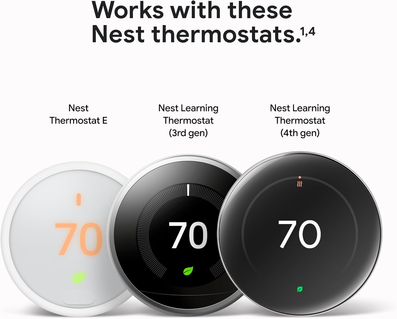 The Nest Temperature Sensor (2nd gen) works with the Nest Learning Thermostat (4th gen), Nest Learning Thermostat (3rd gen), and Nest Thermostat E[1,4]