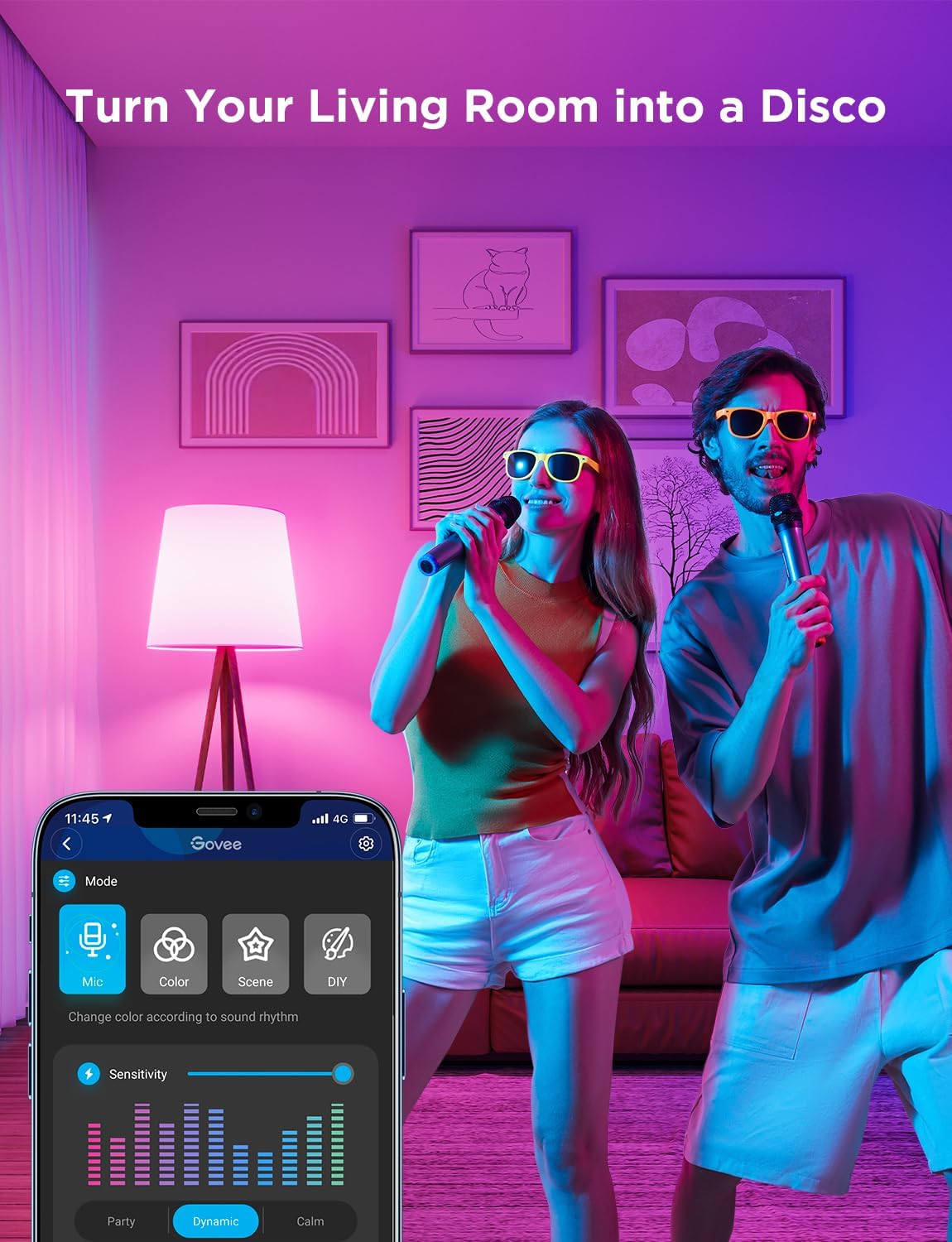 Syncs with Music: Govee smart bulb can change colour and brightness in sync with the rhythm of your music, utilizing the microphone on your smartphone. (Note: Enabled via Govee Home App when microphone permissions are granted & app is open.)