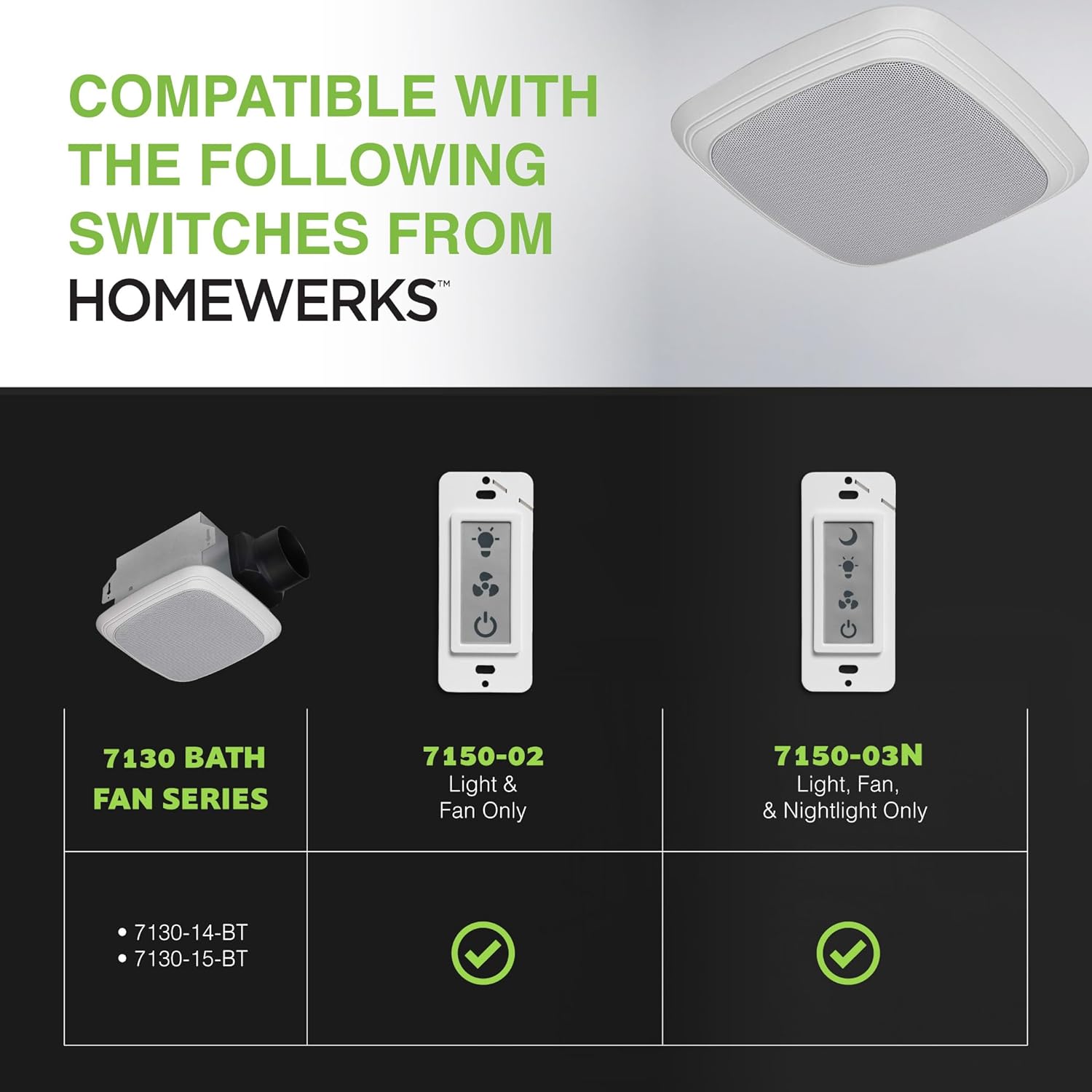 BEST USED WITH HOMEWERKS BATH FANS: Compatible with most bathroom ventilation fans with a light. Best used with Homewerks bath fan models: 7150-02 or 7150-03N