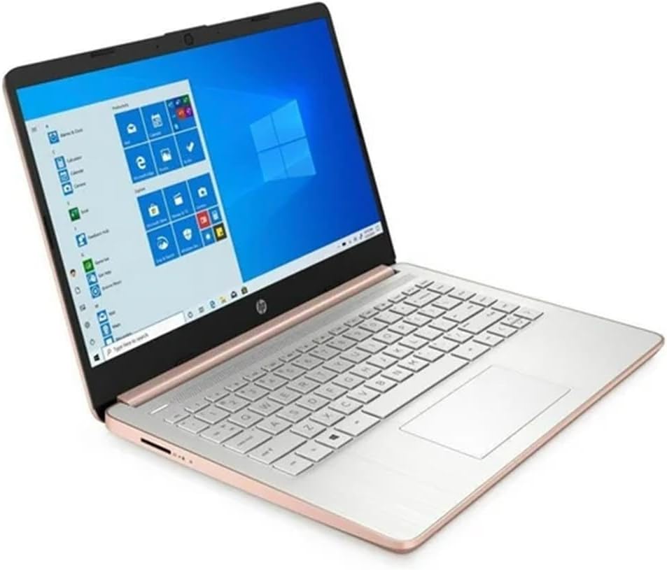 The Pale Rose Gold HP 14 Laptop is designed to keep you productive and entertained from anywhere. Maximize your viewing area and see every detail thanks to 6.5 mm micro-edge bezel display, 79% screen-to-body ratio, and 14-inch HD (1366 x 768) display (1) (2). Not only does this micro-edge screen let you see more, but it also gives you intuitive controls to view your favorite content on this HD touchscreen. Performance, power consumption, and value come together in the Intel® Celeron® N4020, the ideal processor for your busiest days (3). Enjoy the highest resolution games and movies with the 4K-ready Intel® UHD Graphics 600 (4) (5). Store more of what you love and multitask faster, even with multiple windows open, with this touchscreen laptop’s 64 GB of eMMC storage and 4 GB of RAM (6). Up your creativity and efficiency as this HP 14-inch laptop offers even more features for computing from anywhere. Spend more time focused on your daily tasks and less on the battery life with up to 11 hours and 30 minutes of power (7). Plus, HP Fast Charge keeps you powered especially if you need recharge quickly (8). The exceedingly secure Windows 11 Home outfits your PC laptop with fast boot times, increased responsiveness, and added protection against phishing and malware (9). Work confidently with 1-year limited hardware warranty and stay connected with the dependable Wi-Fi 5 (1×1) and Bluetooth® 4.2 combo (10) (11). Boost your creativity as your Windows laptop comes with a 1-year subscription to Microsoft 365, including the whole Office Suite: Word, Excel, and PowerPoint (12). Productivity and entertainment features aren’t the only things your device is equipped with; lead a sustainable lifestyle with a thin laptop that is ENERGY STAR® certified and EPEAT® Silver registered (13) (14). (1) Percent of the active plus inactive viewing area to active viewing area plus border. Measure with lid vertical to the desk. (2) High-definition (HD) content is required to view high-definition images. (3) Multi-core is designed to improve the performance of certain software products. Not all customers or software applications will necessarily benefit from the use of this technology. Performance and clock frequency will vary depending on application workload and your hardware and software configurations. Intel’s numbering, branding, and/or naming is not a measurement of higher performance. Intel, Pentium, Intel Core, Celeron, Iris Xe, Intel logo, and the Intel Inside logo are trademarks of Intel Corporation in the U.S. and other countries. (4) Wireless access point and internet service required and sold separately. The availability of public wireless access points is limited. (5) Graphics output may be limited based on the maximum resolution of the display. Shared video memory (UMA) uses part of the total system memory for video performance. System memory dedicated to video performance is not available for other use by other programs. (6) For storage drives, GB = 1 billion bytes. The actual formatted capacity is less. Up to 5.1GB of disk is reserved for system recovery software. (7) Battery life tested by HP using continuous FHD video playback, 1080p (1920×1080) resolution, 150 nits brightness, system audio level at 17%, player audio level at 100%, played full-screen from local storage, headphone attached, wireless on but not connected. Actual battery life will vary depending on configuration and maximum capacity will naturally decrease with time and usage. (8) Features may require software or other 3rd party applications to provide the described functionality. Internet service required and not included. (9) Not all features are available in all editions or versions of Windows. Systems may require upgraded and/or separately purchased hardware, drivers, software, or BIOS update to take full advantage of Windows functionality. Windows 10 is automatically updated, which is always enabled. ISP fees may apply and additional requirements may apply over time for updates. See microsoft.com. Windows 10 Home (S mode) works exclusively with apps from the Microsoft Store within Windows. Certain default settings, features, and apps cannot be changed. Some accessories and apps compatible with Windows 10 may not work (including some antivirus, PDF Writers, driver utilities, and accessibility apps) and performance may vary, even if you switch to Windows 10 Home configuration (fee may apply). You can’t switch back to Windows 10 Home (S mode). Learn more at Windows.com/Windows10SFAQ. (10) Wireless access point and internet service required and sold separately. The availability of public wireless access points is limited. Wi-Fi 5 (802.11ac) is backward compatible with prior Wi-Fi 5 specs. (11) Bluetooth® is a trademark owned by its proprietor and used by Hewlett-Packard Company under license. (12) Microsoft 365 Personal 1-year subscription included. Activation is required within 6-months of the Windows activation date. Microsoft 365 Family and Microsoft 365 Personal have non-commercial rights and are meant for personal use only. See microsoft.com for full details. (13) ENERGY STAR and the ENERGY STAR mark are registered trademarks owned by the U.S. Environmental Protection Agency. (14) Based on U.S. EPEAT® registration according to IEEE 1680.1-2018 EPEAT®. EPEAT® status varies by country. Visit www.epeat.net for more information