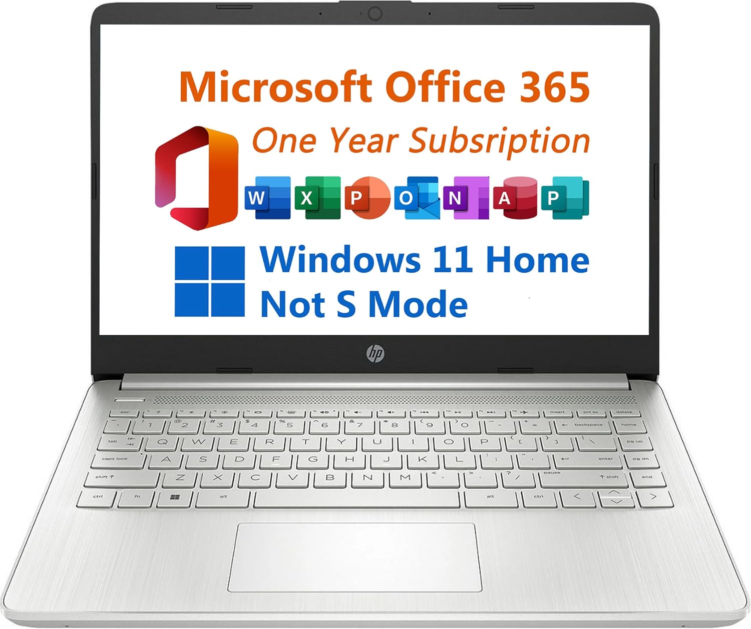 HP 14″ Laptop, 1 Year Office 365 Included, Intel Quad-Core N4120 Processor 2.6 GHz, 11 hours Long Battery Life, USB-C, Windows 11 Home (NOT S Mode)