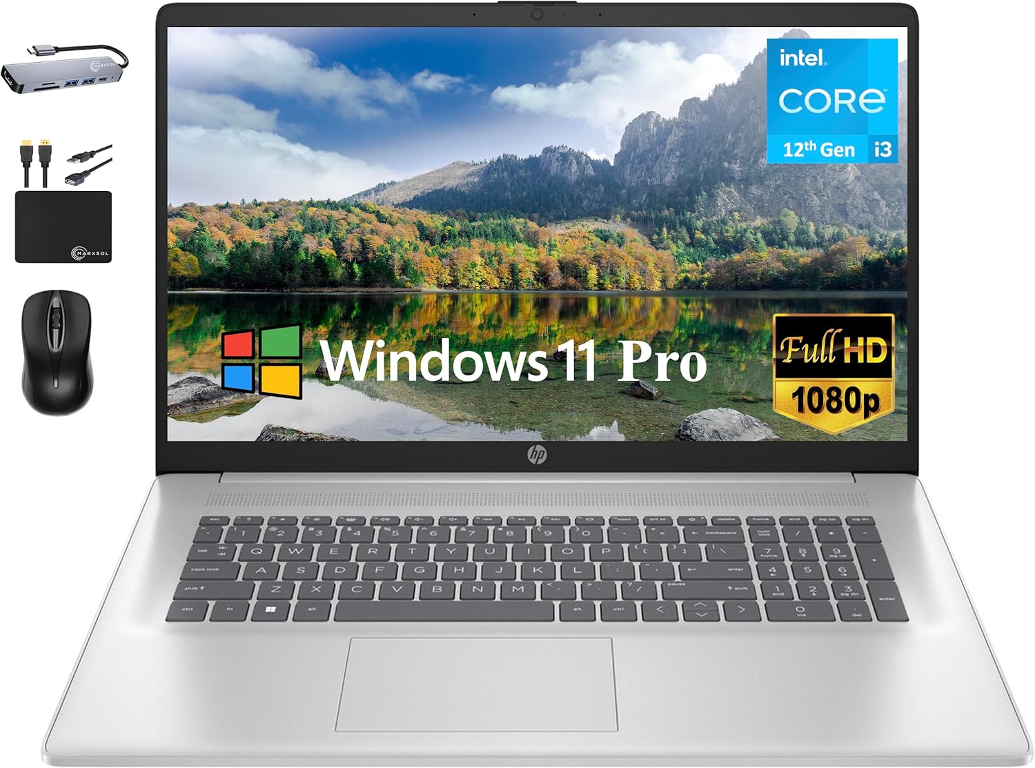 HP 2024 Essential 17.3″” FHD Business Laptop Computer, Intel Core i3-1215U (6-Core), 32GB RAM, 1TB PCIe SSD, Fullsize Keyboard, Webcam, Wi-Fi, HDMI, Windows 11 Pro +MarxsolAccessory, Natural Silver