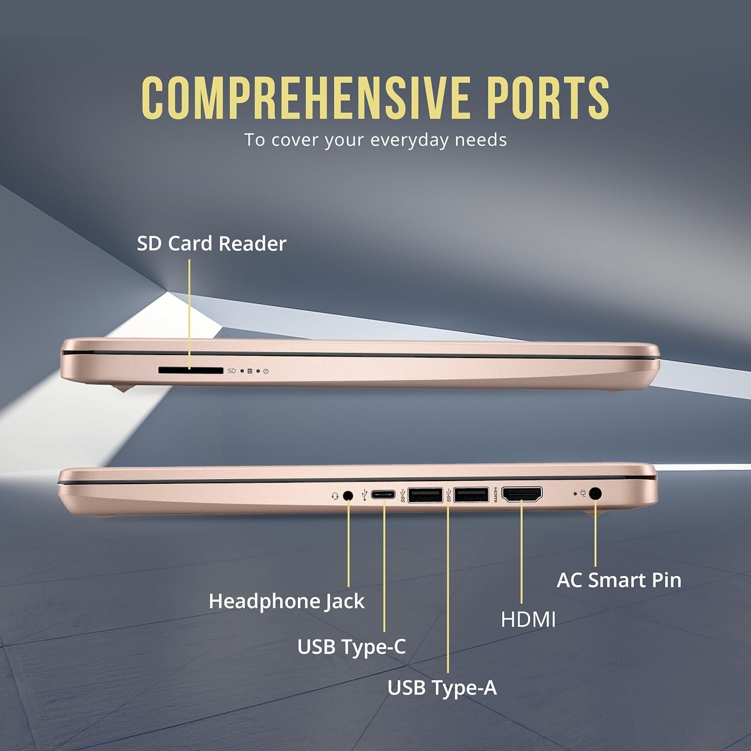 Ports: 2 X USB 3.1 Type A | 1 X Headphone/Speaker/Line-Out Jack | 1 X USB 3.1 TYPE-C | 1 X HDMI | 1xMulti-format SD media card reader