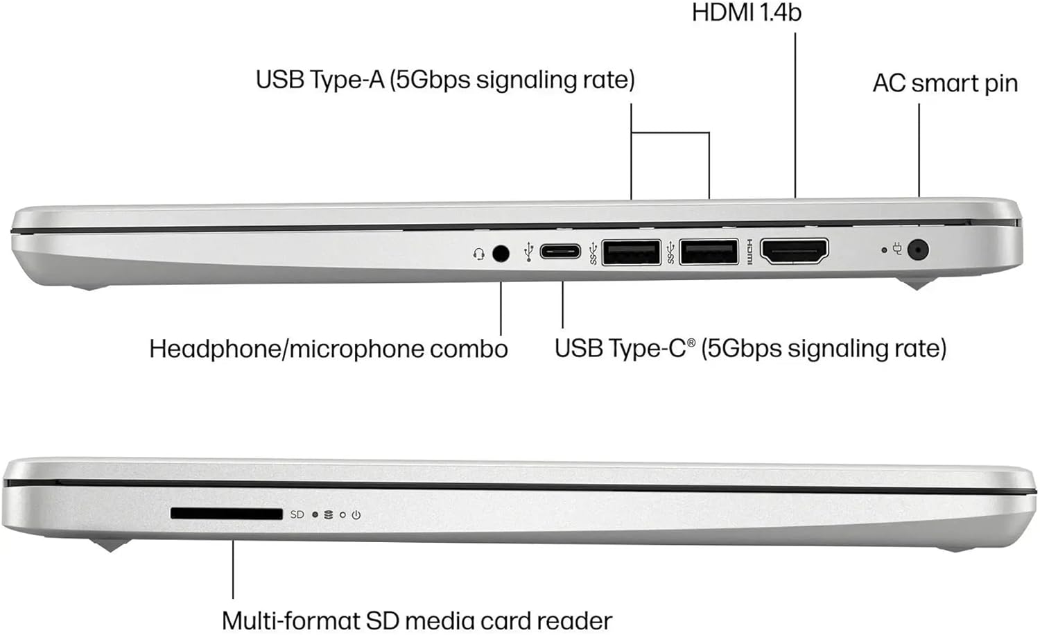 1 x Superspeed USB Type-C, 2 x Superspeed USB Type-A, 1 x HDMI 1.4b, 1 x Headphone/Speaker/Line-Out Jack, 1 x Multi-format SD Media Card Reader