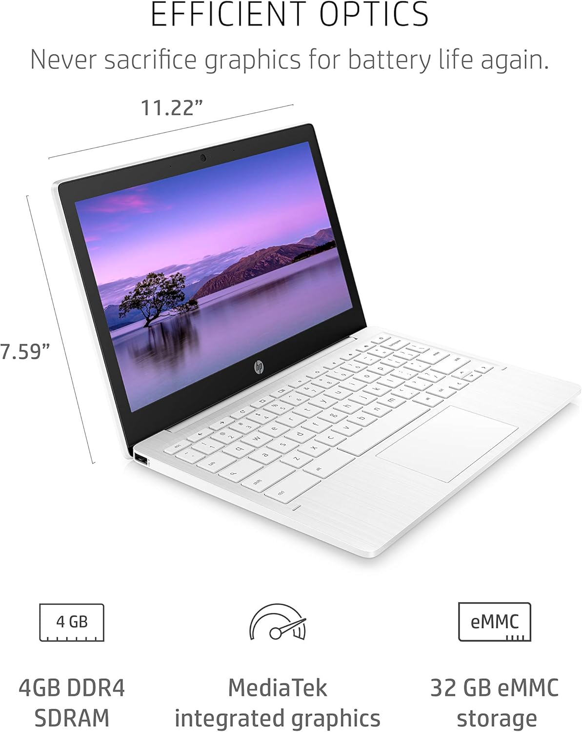 HP Chromebook 11-inch Laptop – Up to 15 Hour Battery Life – MediaTek – MT8183 – 4 GB RAM – 32 GB eMMC Storage – 11.6-inch HD Display – with Chrome OS™ – (11a-na0021nr, 2020 model, Snow White)