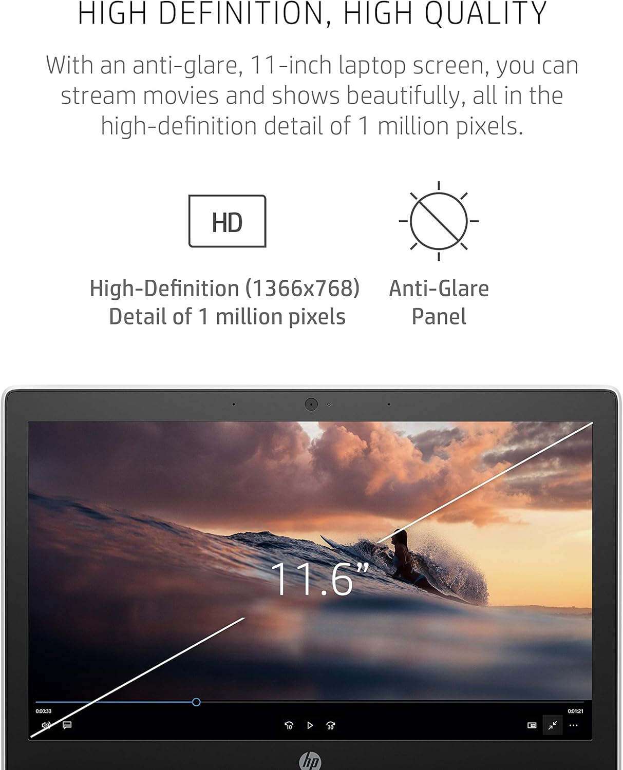 HIGH DEFINITION, HIGH QUALITY – With an anti-glare, 11-inch laptop screen, you can stream movies and shows beautifully, all in the high-definition detail of 1 million pixels