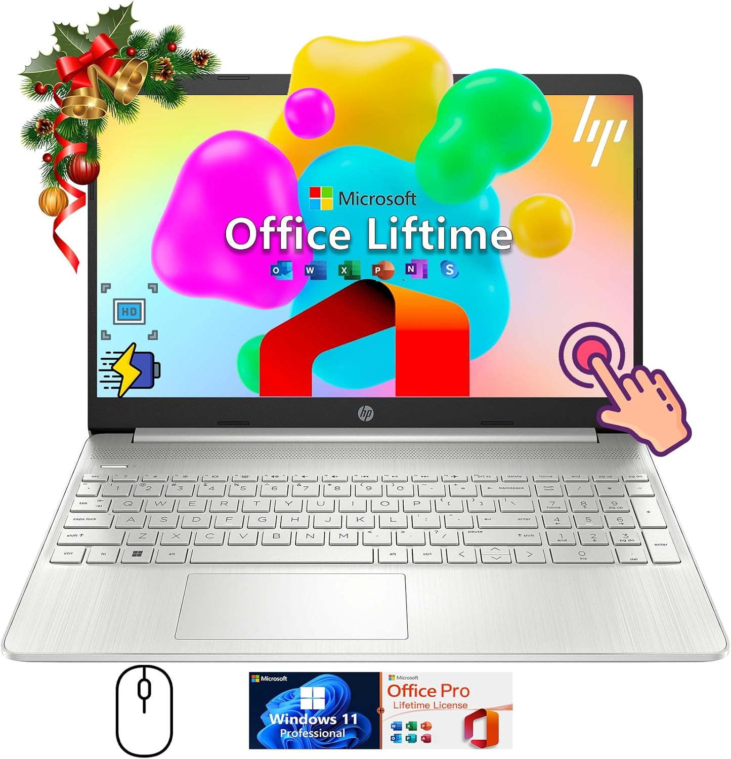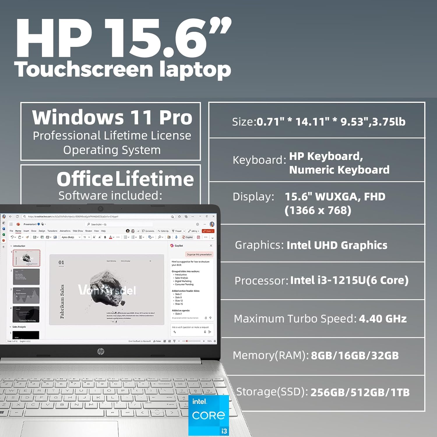 HP Flagship Touchscreen Laptop Computer – Win 11 Pro • 2024 Office Lifetime • 15.6″ Full HD Touchscreen • Intel i3 1215U • Wi-Fi 5 • Anti-Glare HD Display w/JAWFOAL Bundle (16G RAM • 512GB SSD)