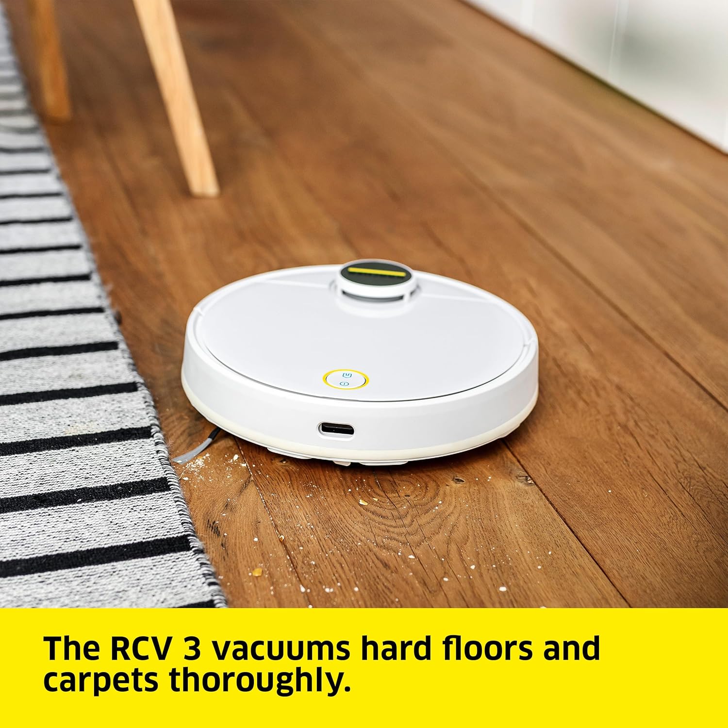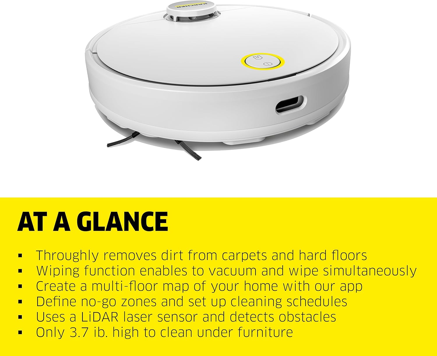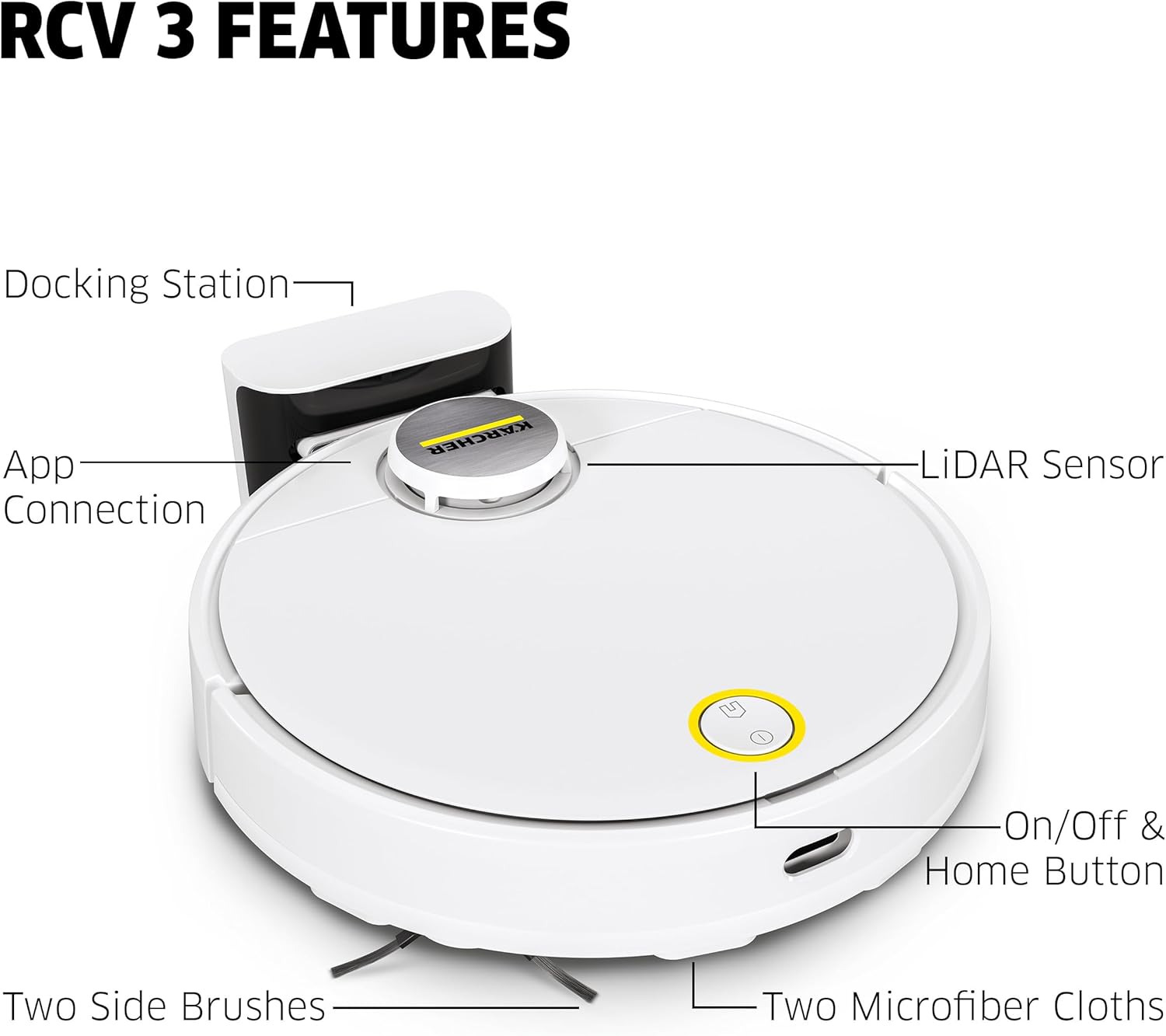 Kärcher RCV 3 Robot Vacuum Cleaner with Mop Function 2500Pa- Remote Control via App, LiDar Laser Navigation – Floor Mapping, Obstacle Detection – 120 min Run-Time – for Hard Floors and Carpets