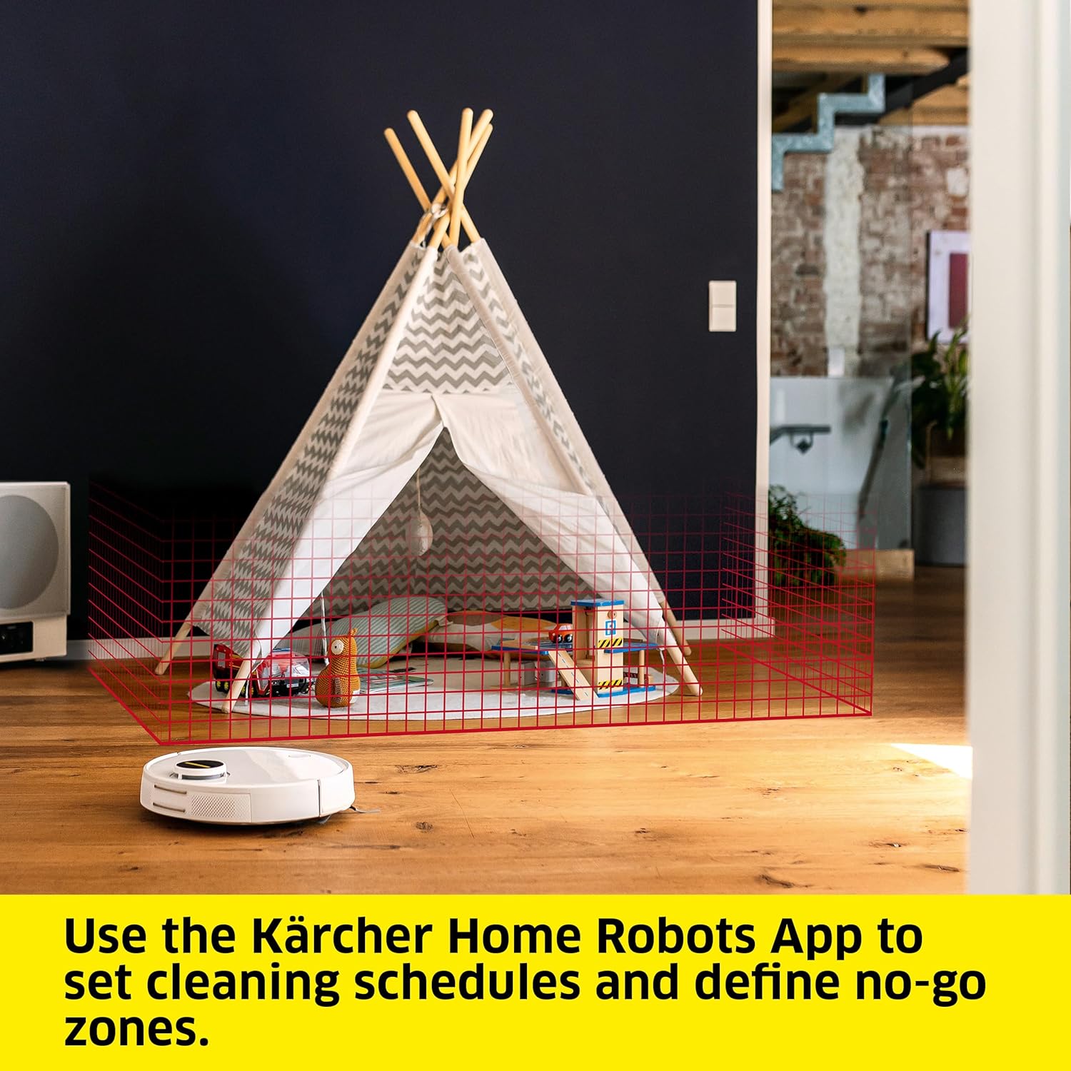 Clever app control: with the Kärcher Home Robots app, you can save a room map of the home, set up cleaning officers, define prohibition zones and set up a cleaning schedule