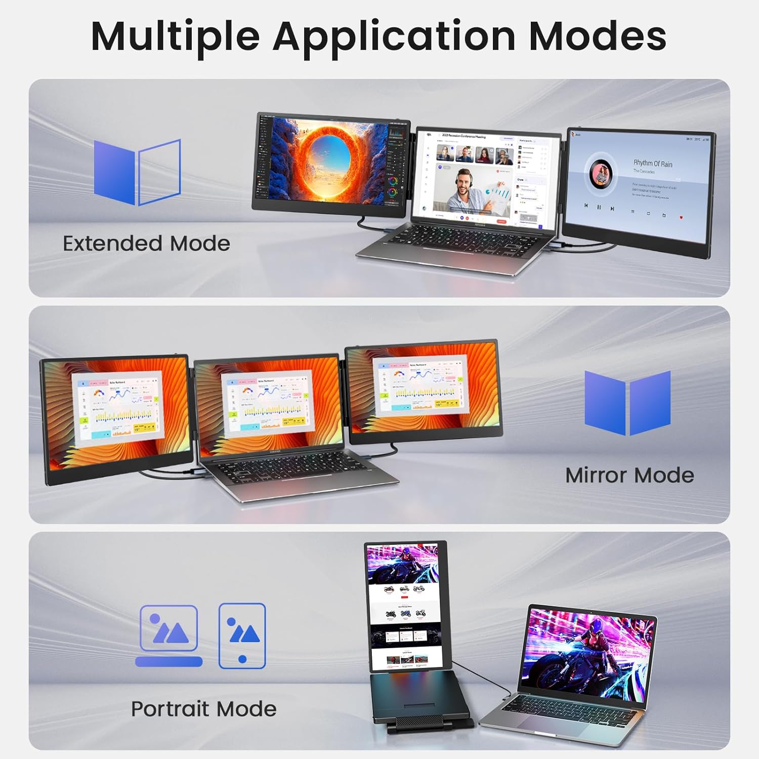 Laptop Screen Extender, 14″ FHD 1080P Triple Portable Laptop Screen Extender Monitor for 13″-16.5″ Laptop with Stand Dual Monitors Built-in Speakers, Laptop Monitor Extender for MacOS/Wins/Chrome/Dex