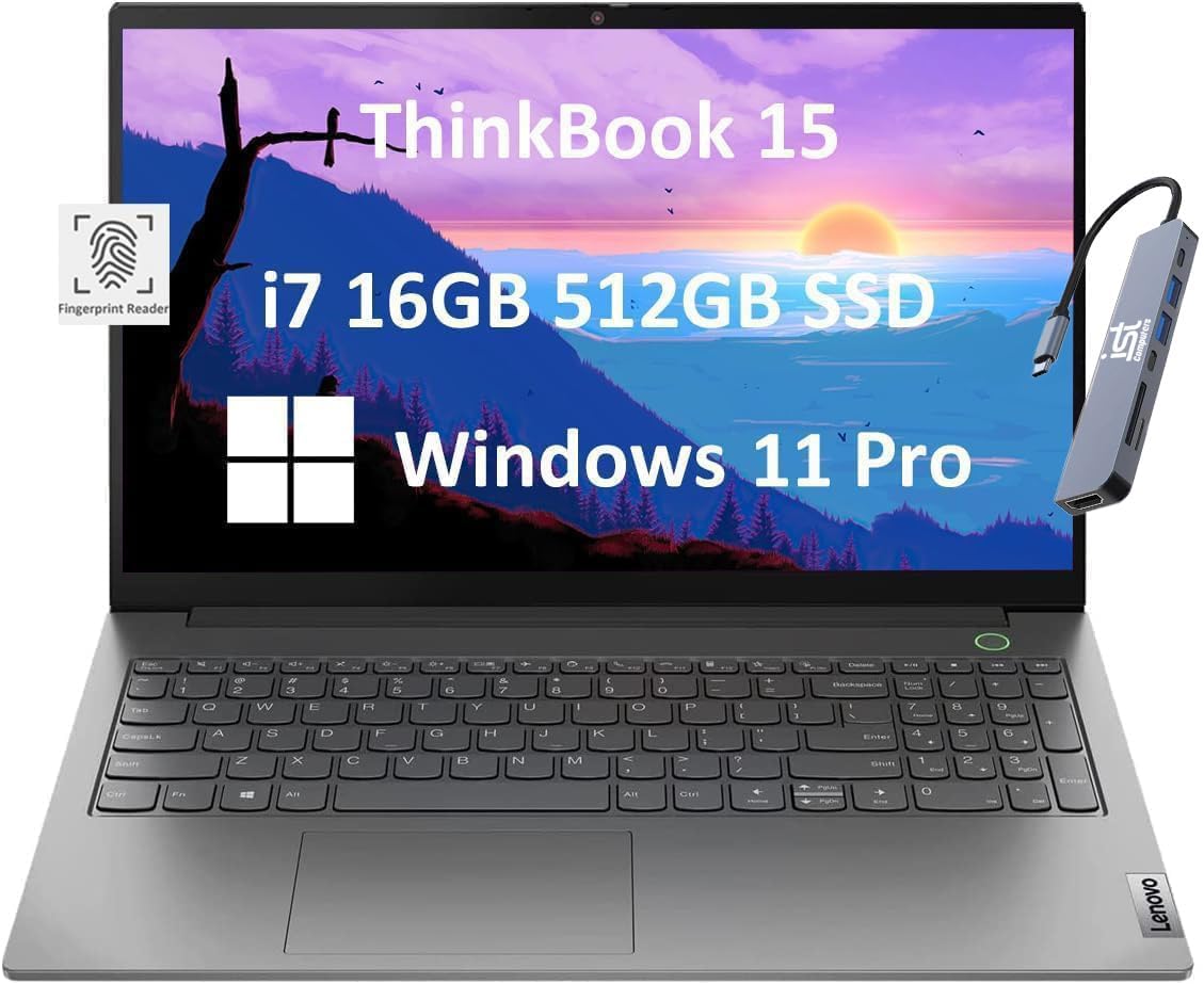 Lenovo ThinkBook 15 Gen 4 Business Laptop (15.6″ FHD, 12th Gen Intel 10-Core i7-1255U, 16GB RAM, 512GB SSD), 1080p Webcam, Fingerprint, IST SD Card, Wi-Fi 6, Ethernet, Win 11 Pro, Grey – 2024