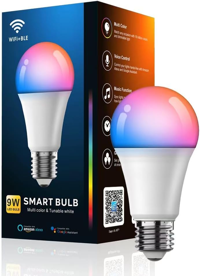 luckystyle Smart Light Bulbs, 9W A19 E26 800LM WiFi Bluetooth LED Bulbs Compatible with Alexa, Google Assistant & Home, 16 Million Colors Music Sync Color Changing Dimmable RGBWW Lights Bulb (1)