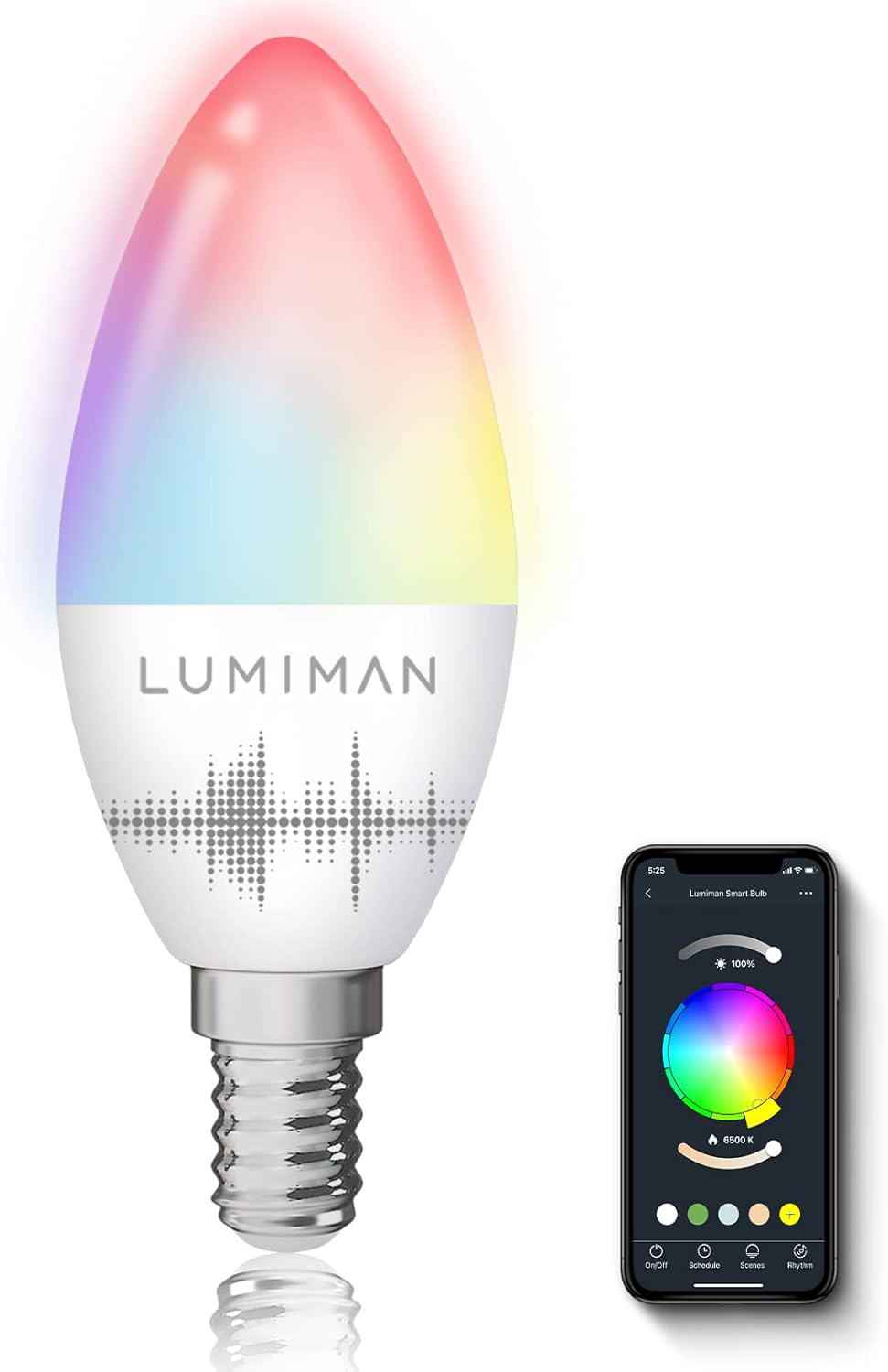 LUMIMAN Candelabra Smart Bulb E12 LED Smart Light Bulbs 2.4G WiFi RGB Color Changing Bulb Work with Alexa Google Home Music Sync Tunable White APP Controls 5W 400lm No Hub Required 1 Pack