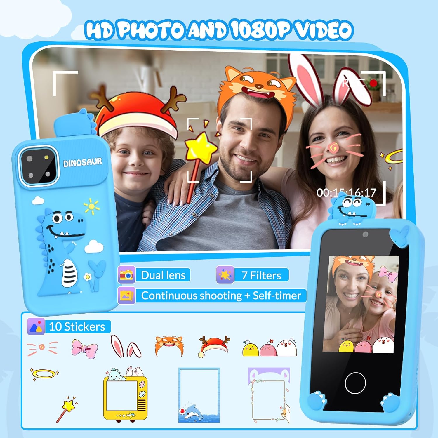 [Great Gift for Kids] This Kids Smart Phone makes for the perfect birthday, Christmas, festival, or holiday gift for boys and girls aged 3~10. Children will love capturing scenes and animals in nature with their extremely cute cell phone. As a bonus, parents can finally have peace of mind knowing their child has their own fake phone and will no longer need to use their smartphone.