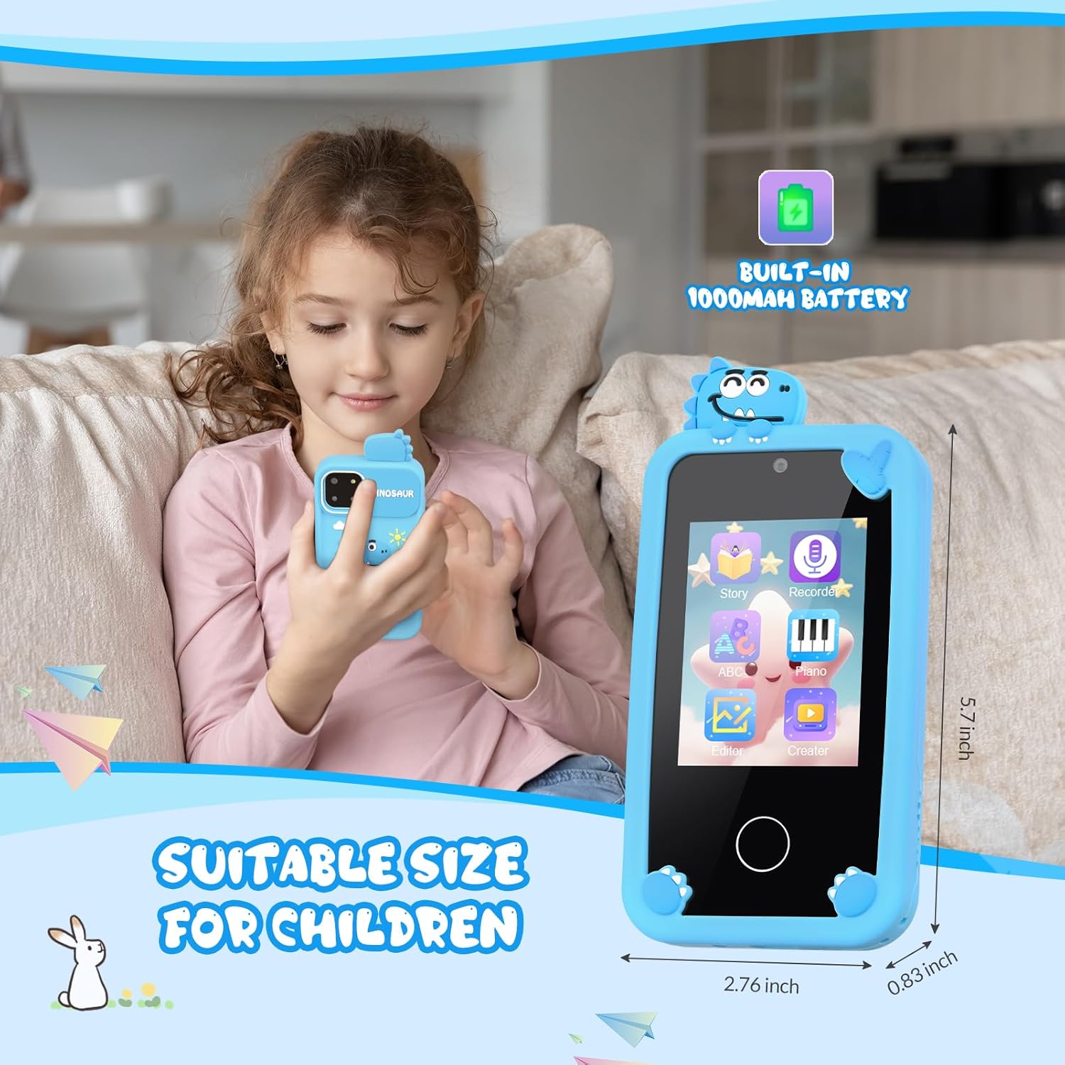 [Powerful 1000mAh Battery & 32 GB TF Card] the Kids Music Phone with a powerful 1000mAh battery and a spacious 32GB memory card. This fun and educational device allows your little ones to enjoy their favorite songs, stories, and educational content on-the-go. With plenty of storage for all their audio files, they can carry their entire music library with them wherever they go. Don’t miss out on this amazing gadget that provides endless entertainment and learning opportunities for your child.