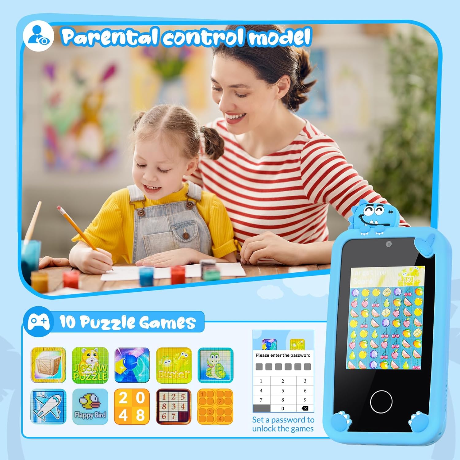 [Interactive Puzzle Games] 10 interesting puzzle games that can stimulate your child’s creativity. Anti-addiction mode allows parents to control their children’s daily play time.(Initial password: 000000)