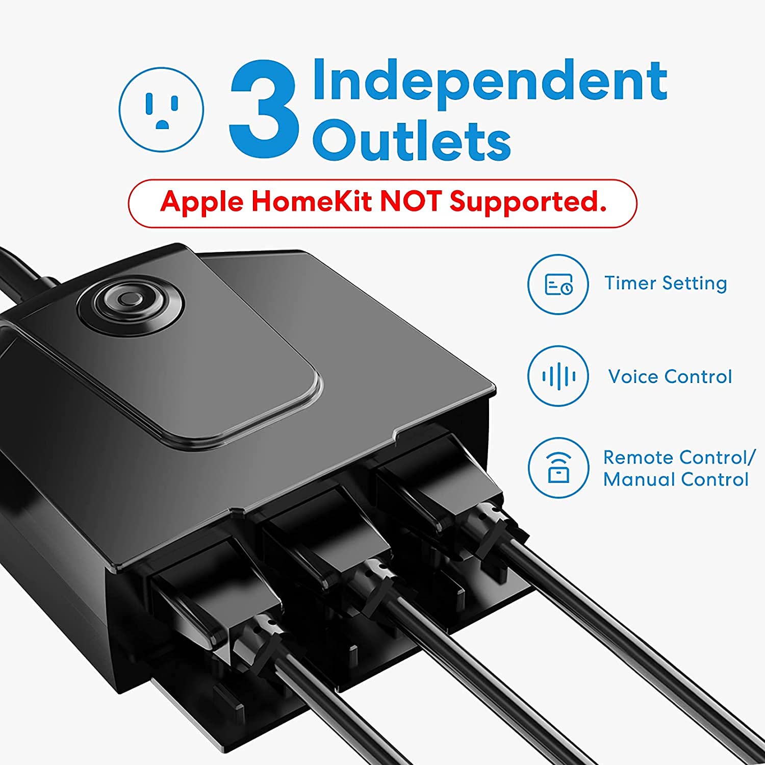 3 Outlets Design: Equipped with 3 individually controlled sockets. 3 outlets WORK INDEPENDENTLY of one another. meross outdoor smart outlet has longer Wi-Fi connection range and lower offline rate. Please also make sure connect your Phone to 2.4GHz home Wi-Fi while setting up the outdoor Wi-Fi plug.