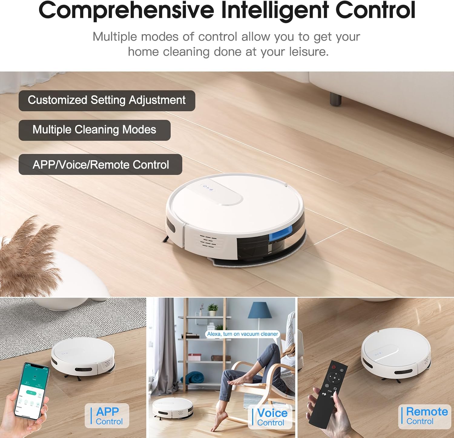 【Convenient Customization with APP & Voice Control】Tailor the clean when and where you need it. You can set the robot aspiradora to your preference for the daily cleaning of dirt, dust, and debris with the smart App or your voice assistant. – for effortlessly clean floors. Symple your cleaning life with the hands-free innovative system in different household scenarios.