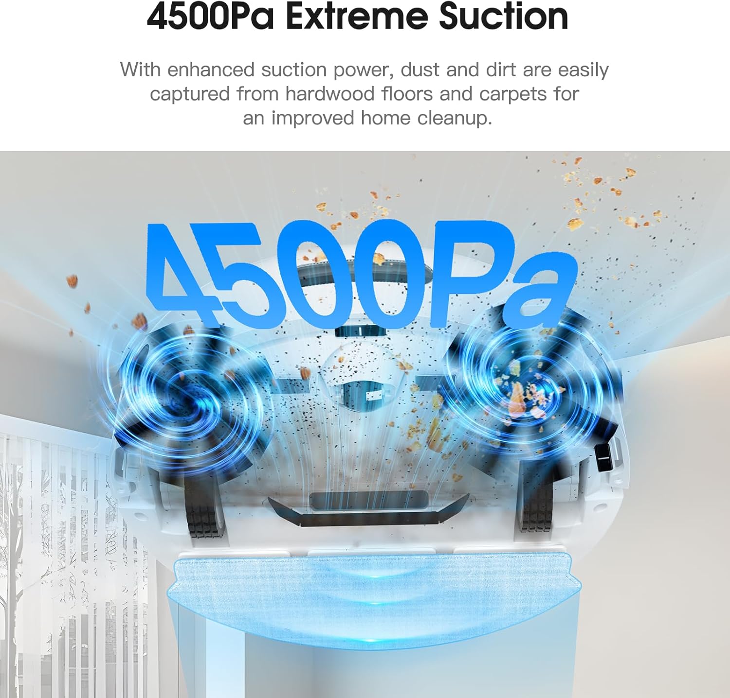 Robot Vacuum and Mop Cleaner with 4500Pa Suction, Advanced 3D Obstacle Avoidance, Next-Generation Smart APP & Voice Control Robotic Vacuum, Automatic Aspirdora for Pet Hair, Home Hard Floor